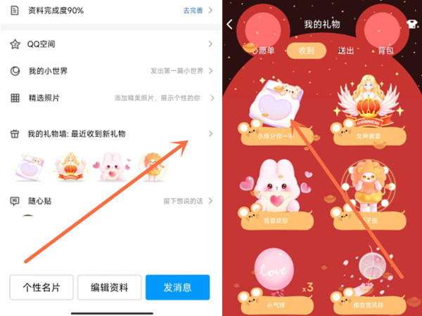 qq不支持删除送出的礼物记录,但是可以将收到的礼物隐藏。隐藏礼物的具体操作步骤如下: