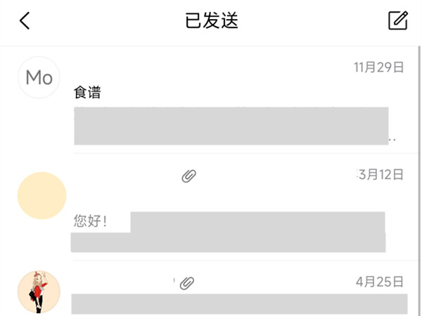2、点击进入后即可查看已经发送出去的邮件,在对应邮件里找到发送的文件即可。