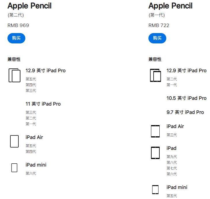 apple pencil一代支持12.9 英寸 iPad Pro (第一、二代)、10.5 英寸 iPad Pro、9.7 英寸 iPad Pro、iPad Air (第三代)、iPad (第六至九代)、iPad mini (第五代)。
