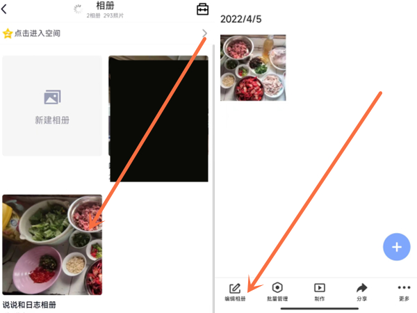 2、点击需要设置密码的相册,再点击编辑相册。