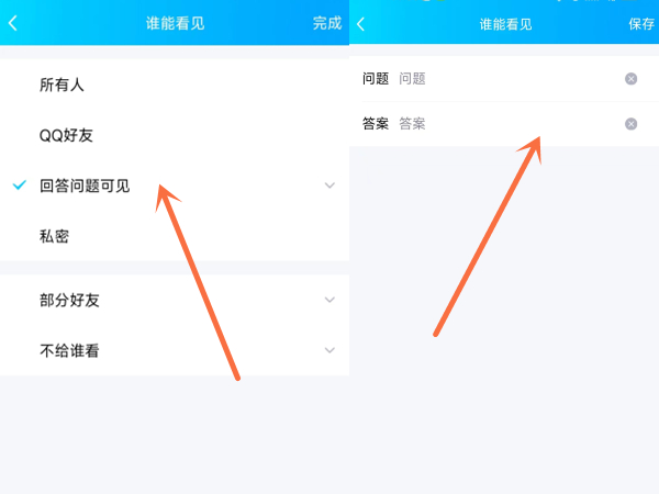 3、点击回答问题可见,设置好问题和答案后点击保存即可。