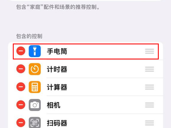 (如果控制中心没有,可进入手机设置-控制中心-自定控制,添加手电筒快捷方式)。