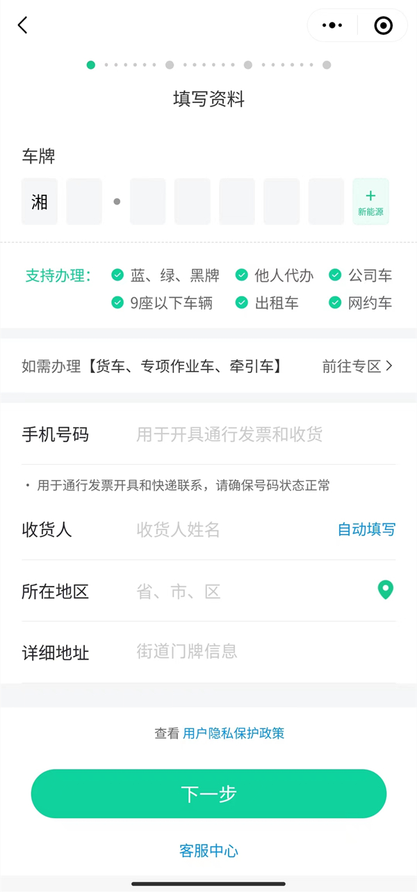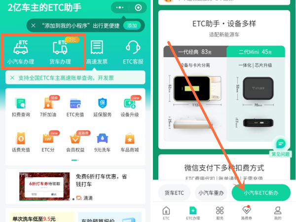 2、点击小汽车办理(或者货车办理),再点击小汽车ETC新办。