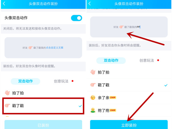 4、选择戳一戳,自定义文案,立即装扮即可。