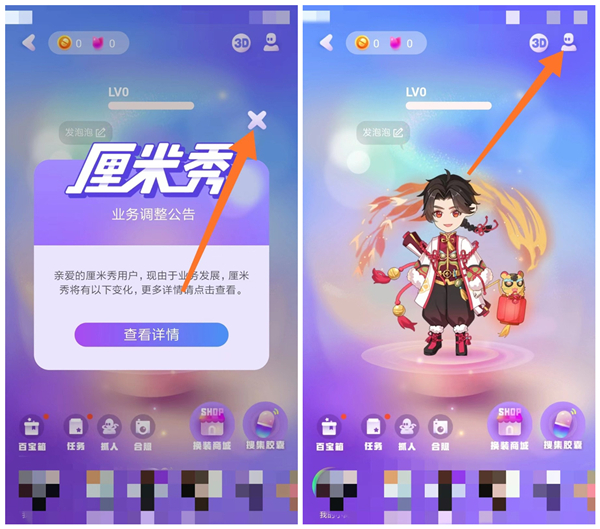 2、在跳转出的页面,点击右下角的【厘米秀形象】。