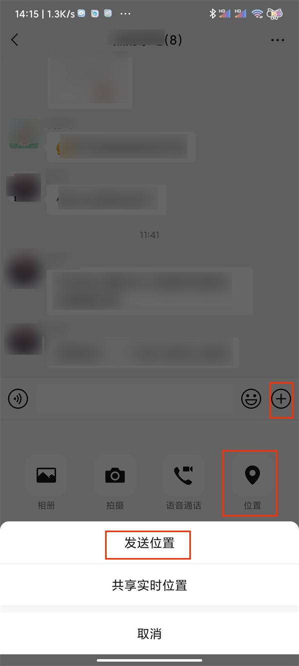 1、进入微信聊天界面,点击对话框后的加号,点击位置,点击发送位置。