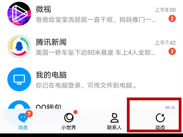 1、登录qq首页,点击动态。