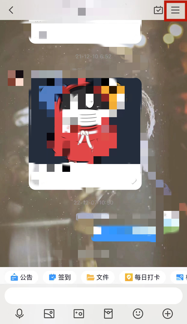2、进入群聊界面,点击右上角的【三条横线】。