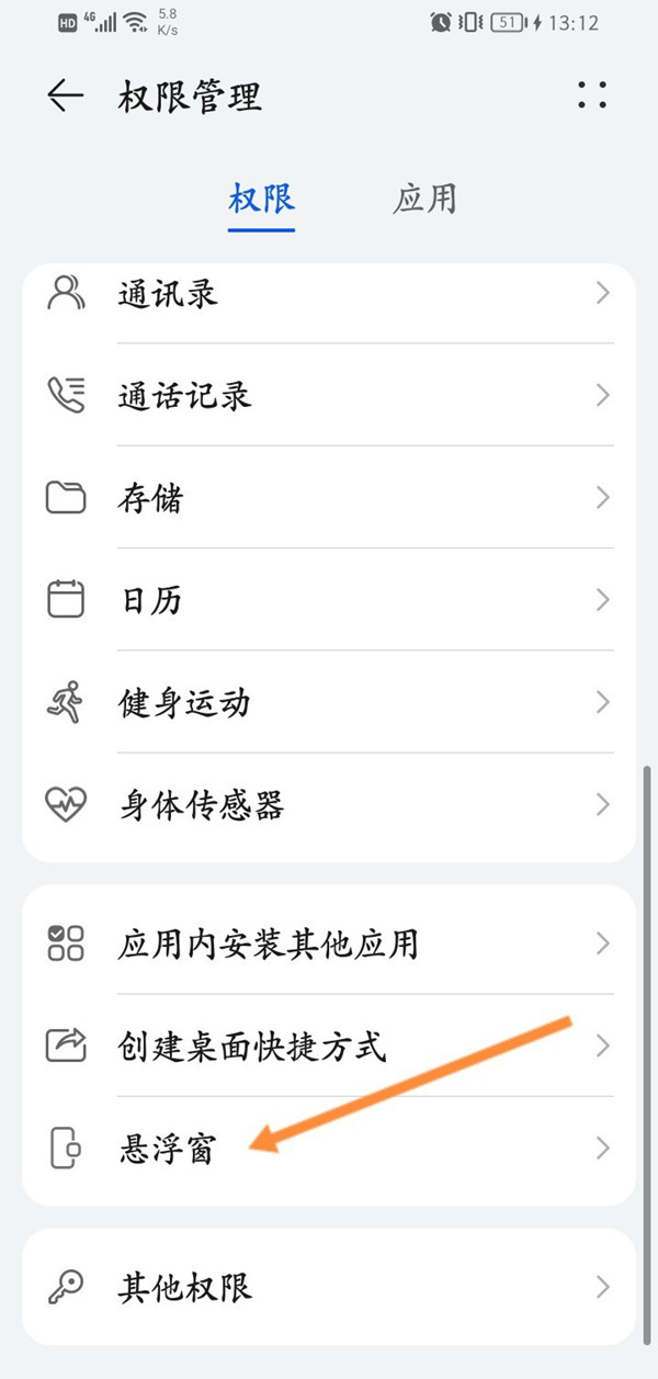 3、点击【悬浮窗】,打开微信开关即可。
