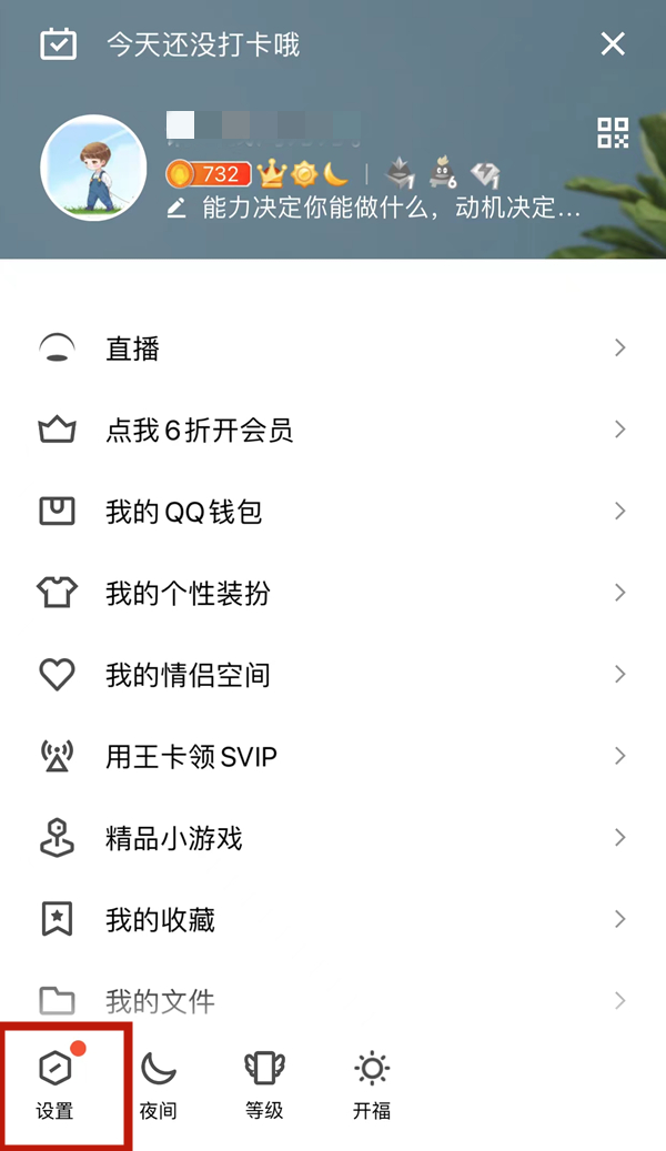 2、在QQ个人信息界面,点击左下角【设置】。