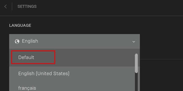 3、点language下的English,选简体中文,若没有,就点击【Default】,这是默认的意思。