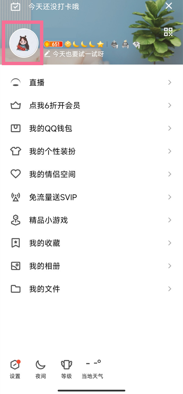 1、打开手机QQ,在消息界面点击左上角头像,再点击头像进入个人主页。