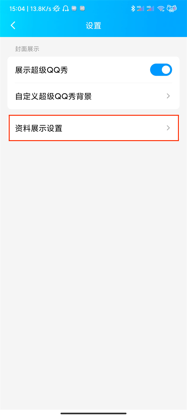 2、点击资料展示设置。