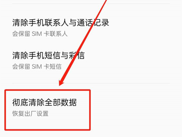 4、进入重置手机页面,点击【彻底清除全部数据】,密码验证通过即可恢复出厂设置了。