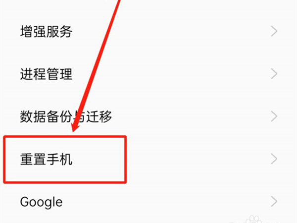 3、进入系统设置页面,点击【重置手机】。