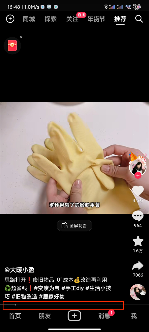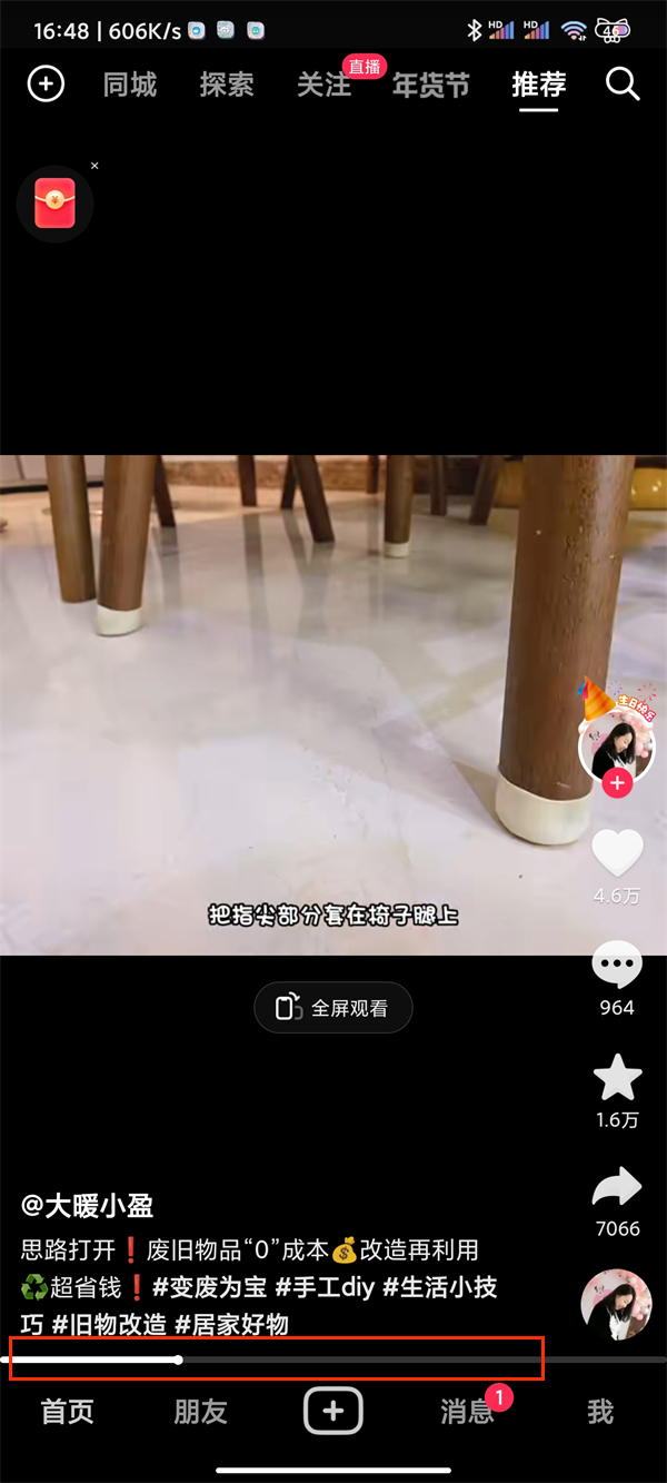 1、打开抖音,进入自己需要拖动进度条的视频。