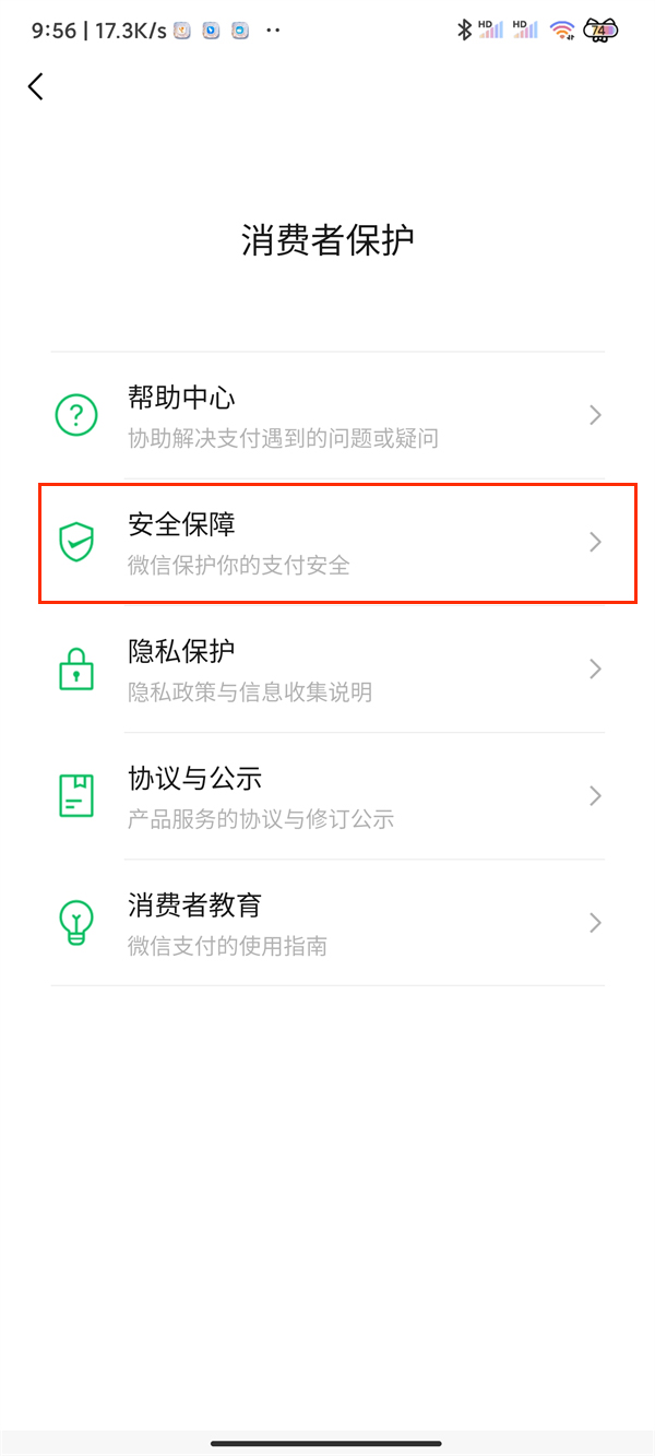 3、点击安全保障。