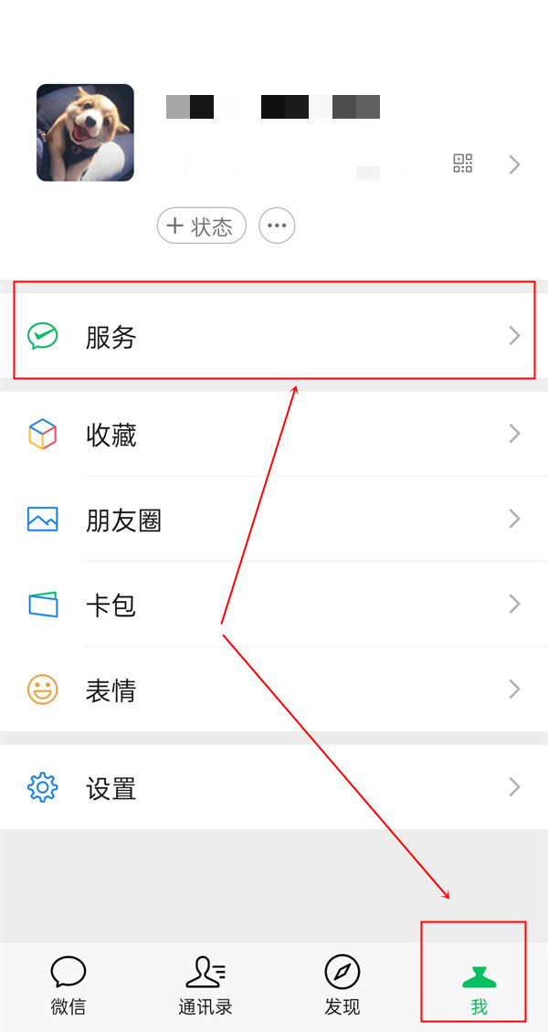 1、打开微信,在“我”页面点击【服务】。