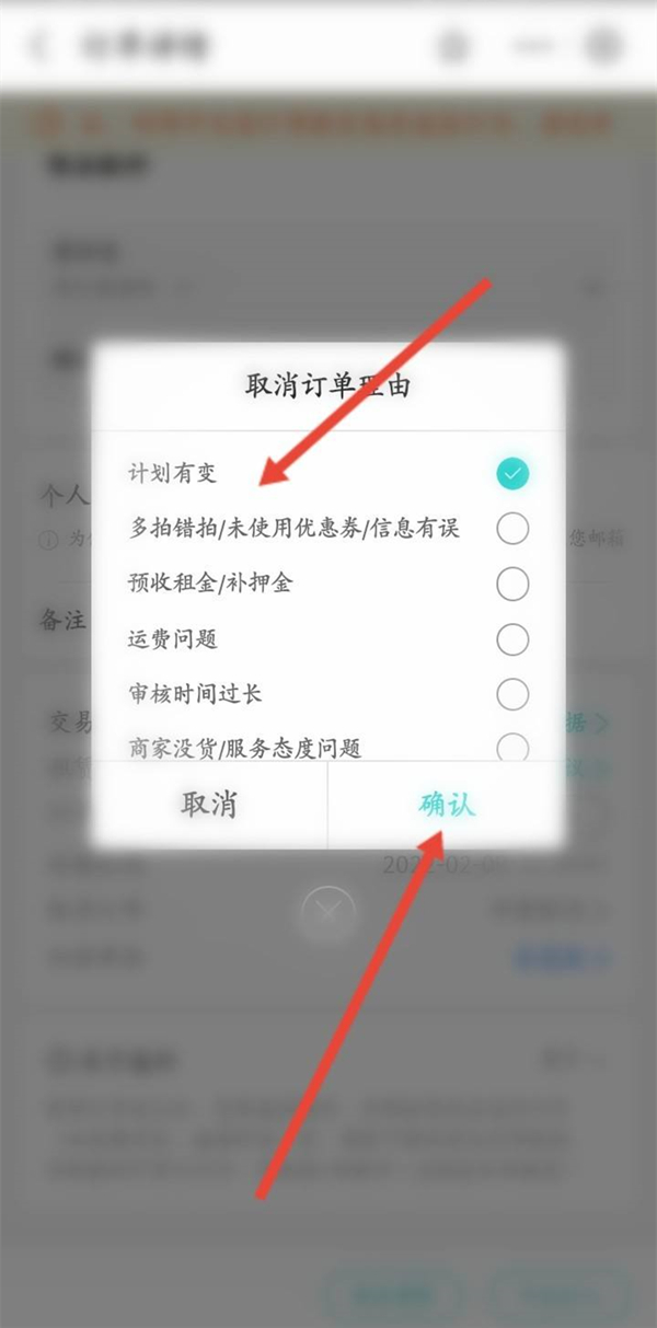 6、选择取消订单原因,点击确认即可。