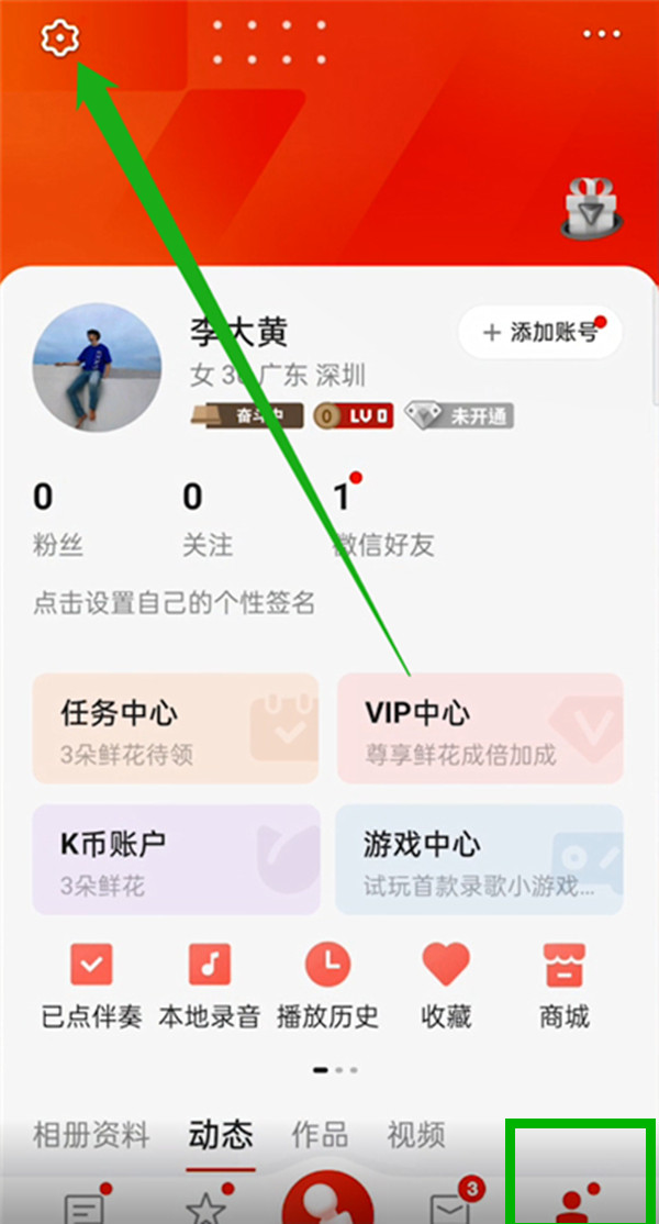 全民k歌小号怎么注销?1、登录全民k歌,点击我的-设置。