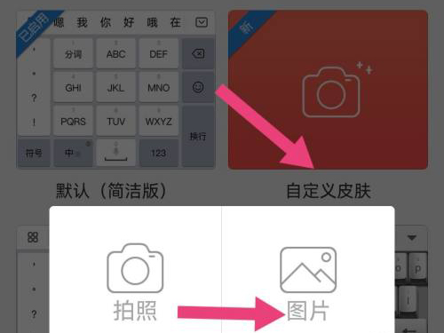 2、点击自定义皮肤,再点击图片。