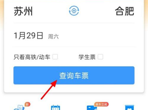 1、在铁路12306页面,选择时间地点,点击查询车票。