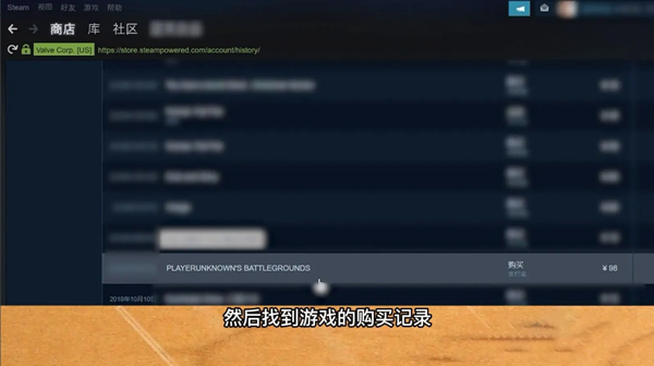 2、点击查看消费历史记录,然后找到游戏的购买记录,并点击进入。