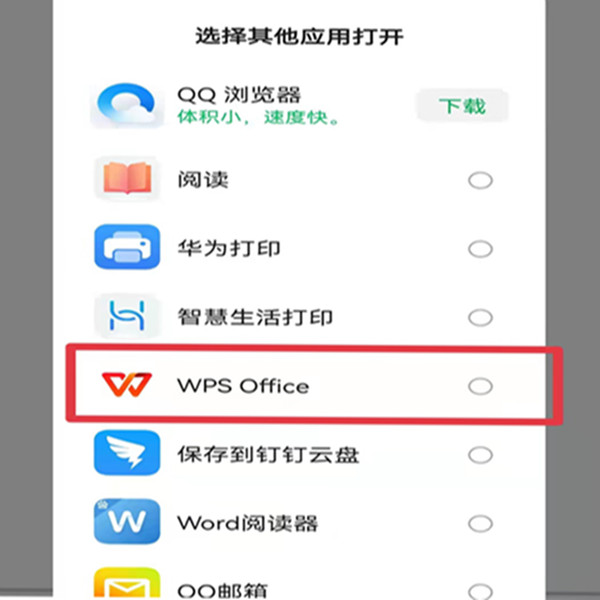 4、在下方弹出的打开方式中勾选wps选项,点击击确认,即可成功打开文档。
