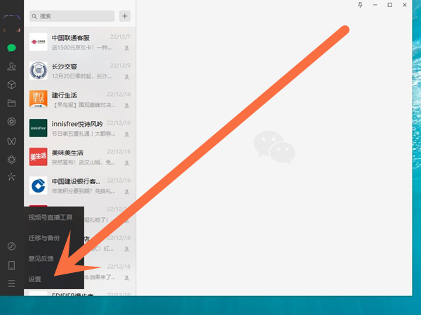 1、在电脑上登录微信后,在左下角三横线中点击设置。