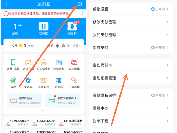 2、点击右上角的设置,再点击自动扣费管理,将开通自动续费的QQ超级会员服务关闭即可。