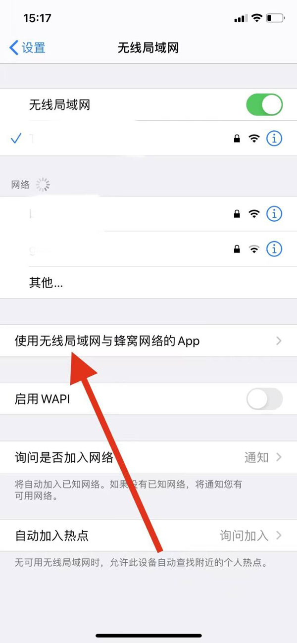 4、点击WLAN与蜂窝网络,即可解决问题。