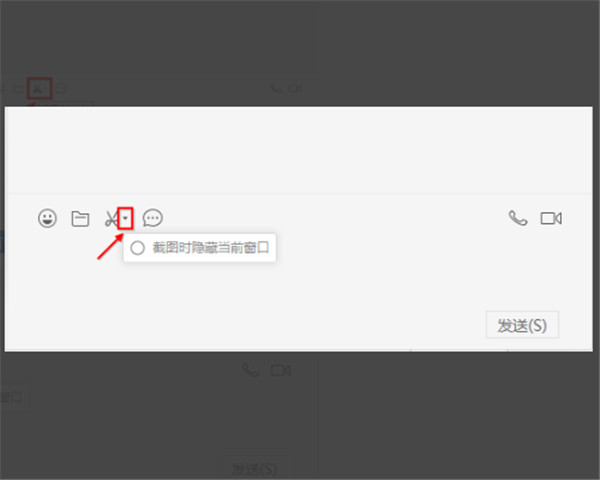 1、在微信聊天页面,点击小剪刀图标使用截图工具。