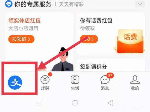 1、打开支付宝,点击的左下角的“支付宝”,进入支付宝首页。