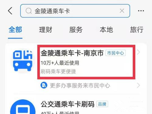 ️也可以在支付宝首页页面的上方的搜索框输入“金陵通乘车卡”,具体步骤如下: