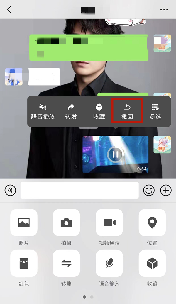 2、然后我们长按想要撤销的小视频,在弹出来的窗口中点击选择【撤回】。