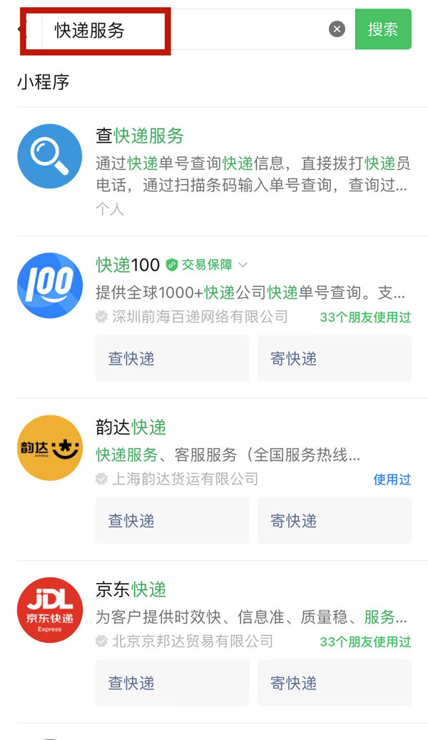 2、在搜索框内输入【快递服务】并点击搜索。