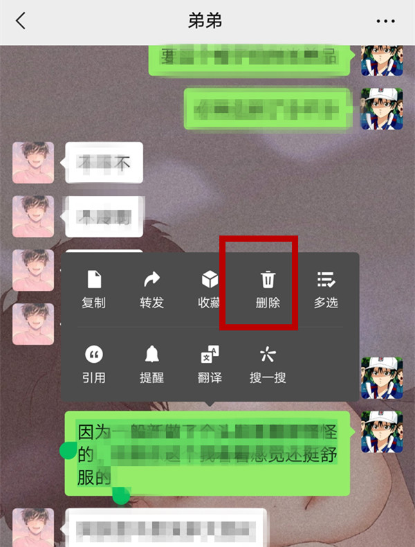打开聊天界面,长按需要删除的聊天记录,选择删除即可。