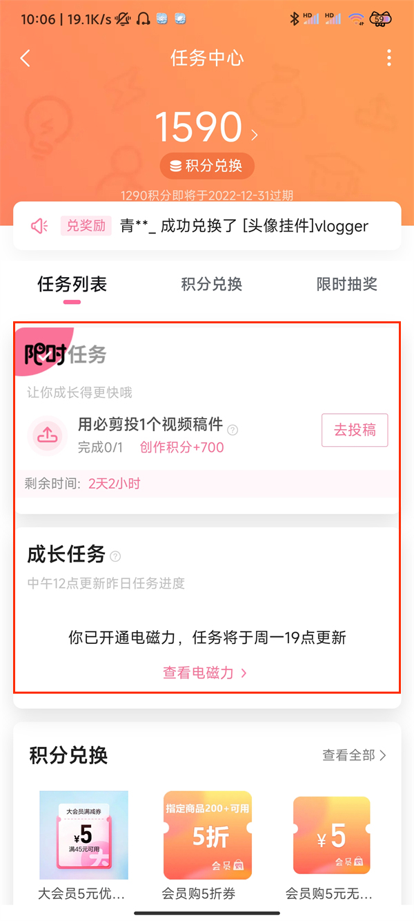 b站的电磁力怎么提升?b站提升电磁力需要用户进入任务中心查看任务进行投稿创作。查看任务操作步骤如下: