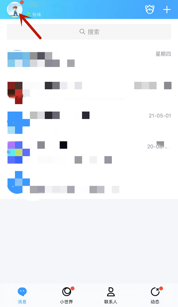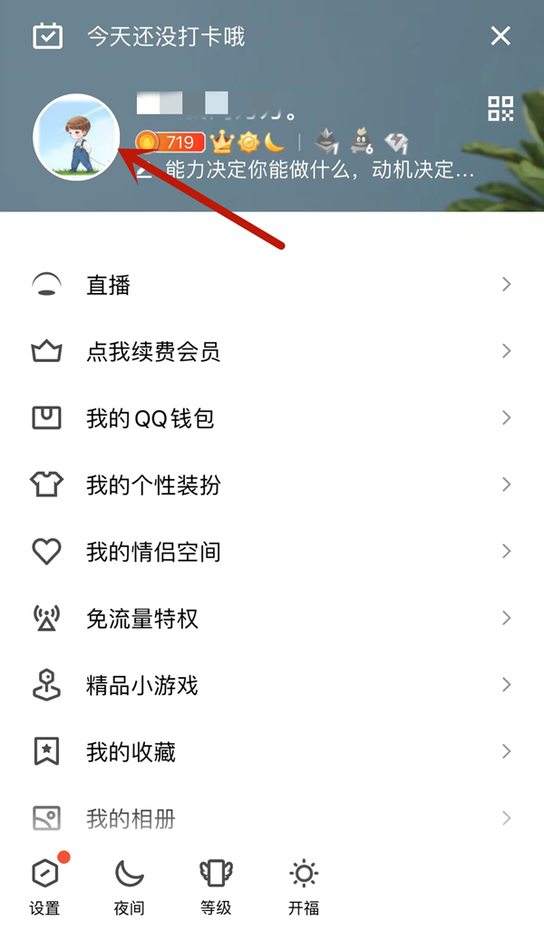 1、打开手机qq,点击左上角的头像,进入菜单栏。