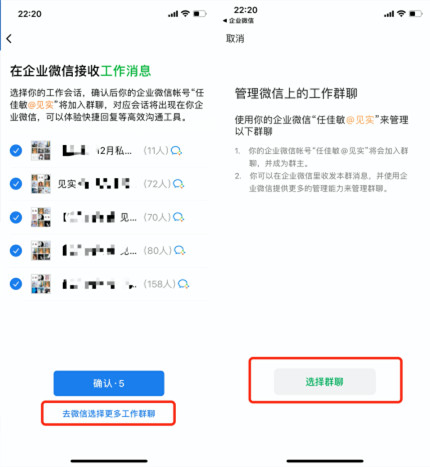 2、点击【在微信选择更多工作群聊】, 跳转到微信。