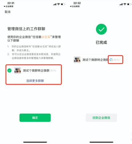 ️小编提示:想要进行群迁移需满足:① 个微号必须绑定企微号② 群为个微号创建③ 只有群主才可以进行个人微信群转移成企业微信群,群成员不可迁移。