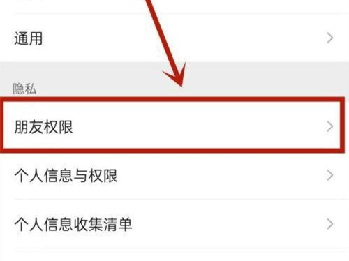 2、打开【隐私】界面,进入【朋友权限】。