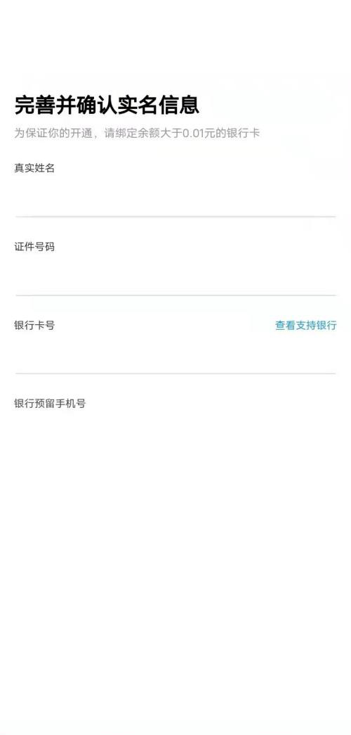 2、输入姓名,身份证号,手机号,验证实名信息。