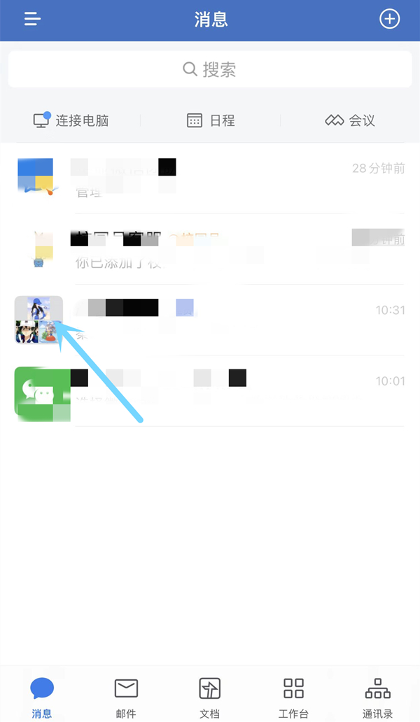 1、在企业微信消息首页,点击【企业微信群聊】。