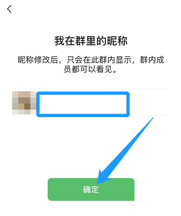 4、输入需要修改的群昵称,再点击下方的【确定】按钮保存修改即可。