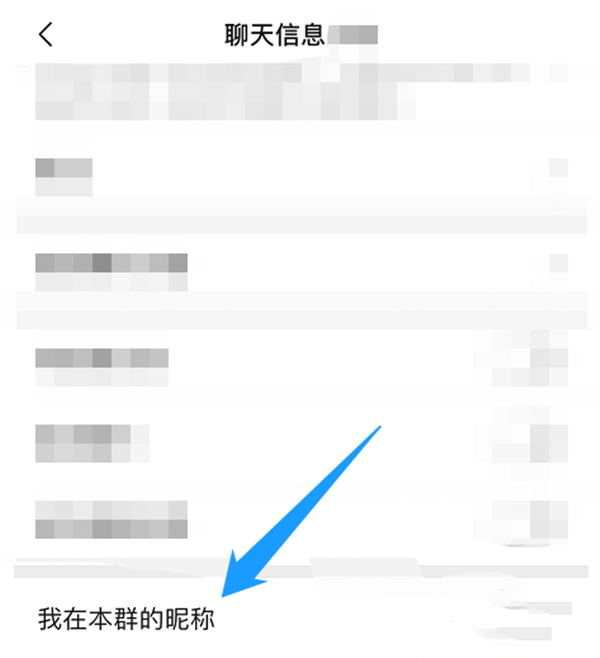 3、进入到【聊天信息】页面后,点击【我在本群的昵称】选项。