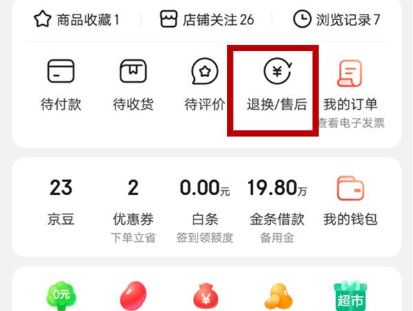 1、打开京东【我的】,点击【退换/售后】。