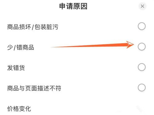 4、点击并选择一个退货申请原因提交即可。