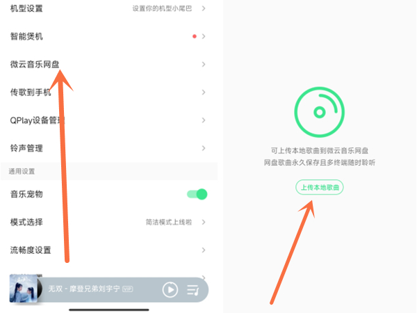 2、再点击微云音乐网盘,点击上传本地歌曲即可。