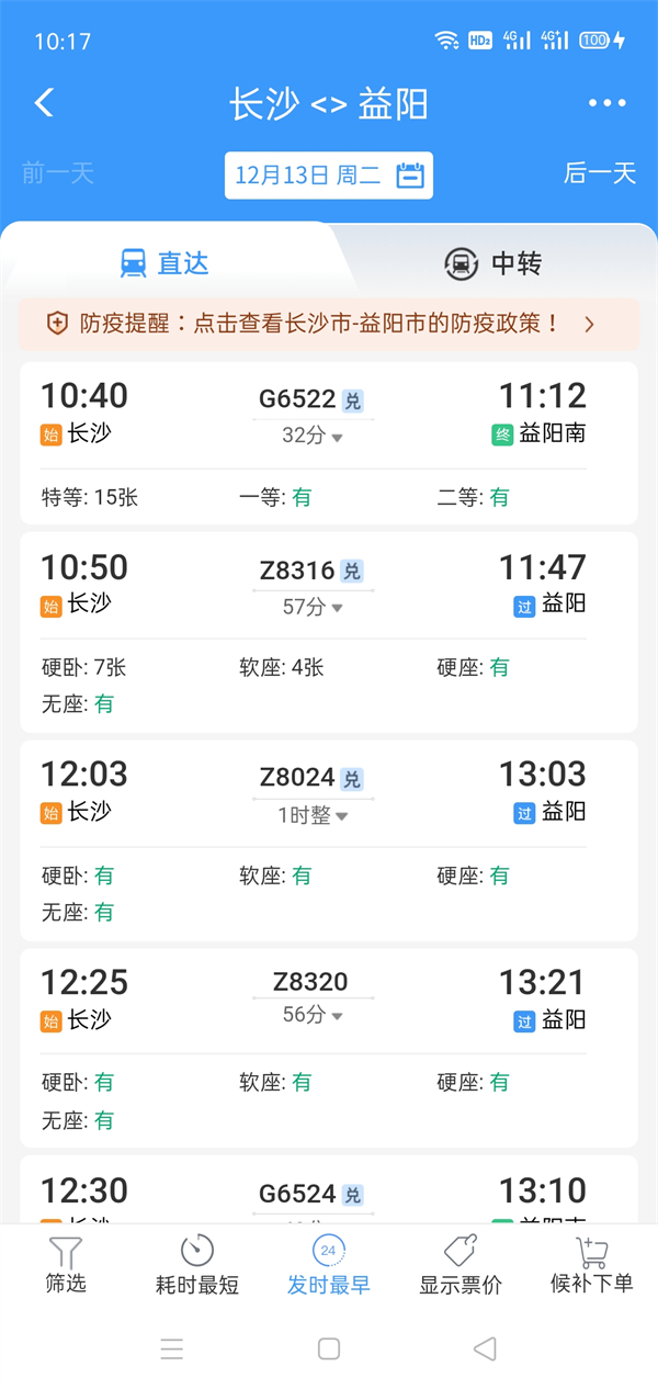 2、选择需要的车次。